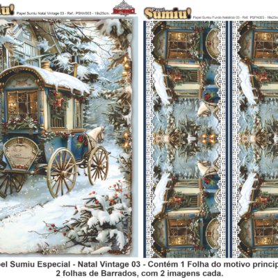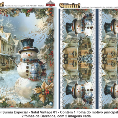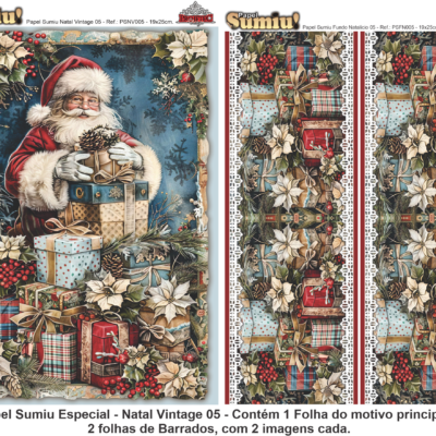 PAPEL SUMIU Especial – Natal Vintage 001 – REF.: PSNV001 – PACK C/3 Folhas 19x25cm