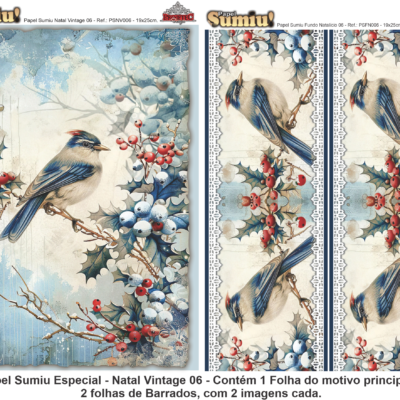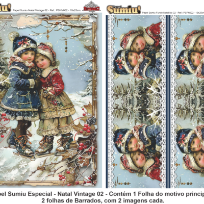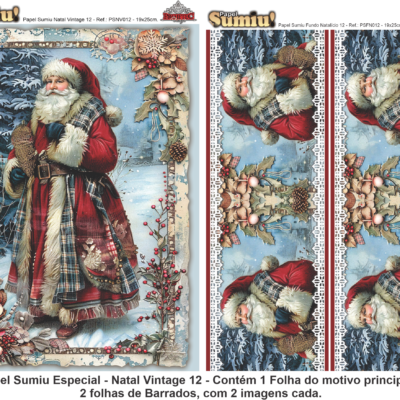 PAPEL SUMIU Especial – Natal Vintage 002 – REF.: PSNV002 – PACK C/3 Folhas 19x25cm