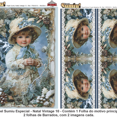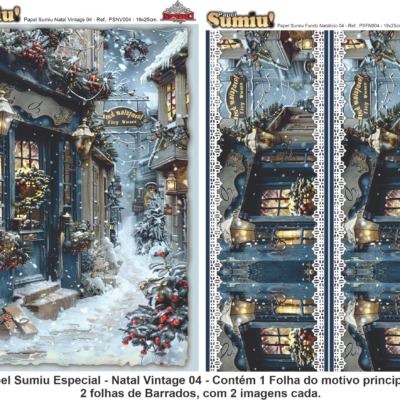 PAPEL SUMIU Especial – Natal Vintage 007 – REF.: PSNV007 – PACK C/3 Folhas 19x25cm