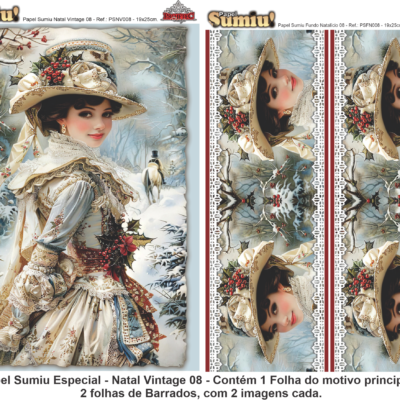PAPEL SUMIU Especial – Natal Vintage 008 – REF.: PSNV008 – PACK C/3 Folhas 19x25cm
