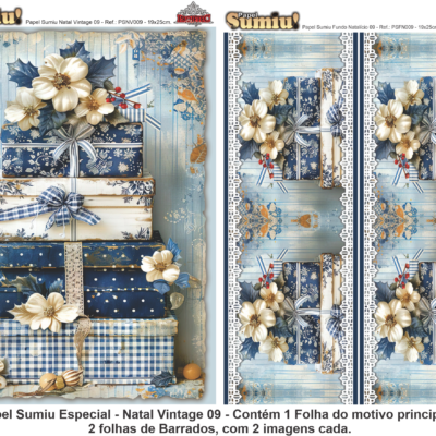 PAPEL SUMIU Especial – Natal Vintage 009 – REF.: PSNV009 – PACK C/3 Folhas 19x25cm