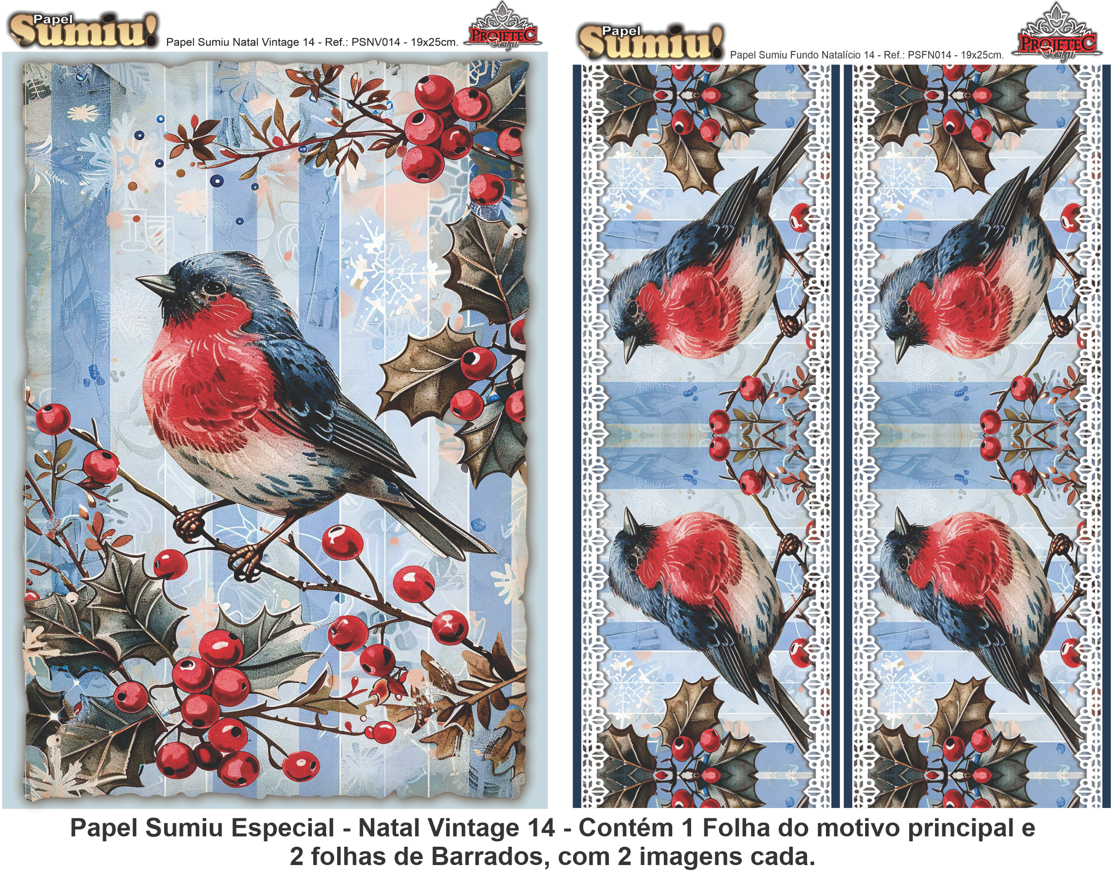 PAPEL SUMIU Especial – Natal Vintage 014 – REF.: PSNV014 – PACK C/3 Folhas 19x25cm
