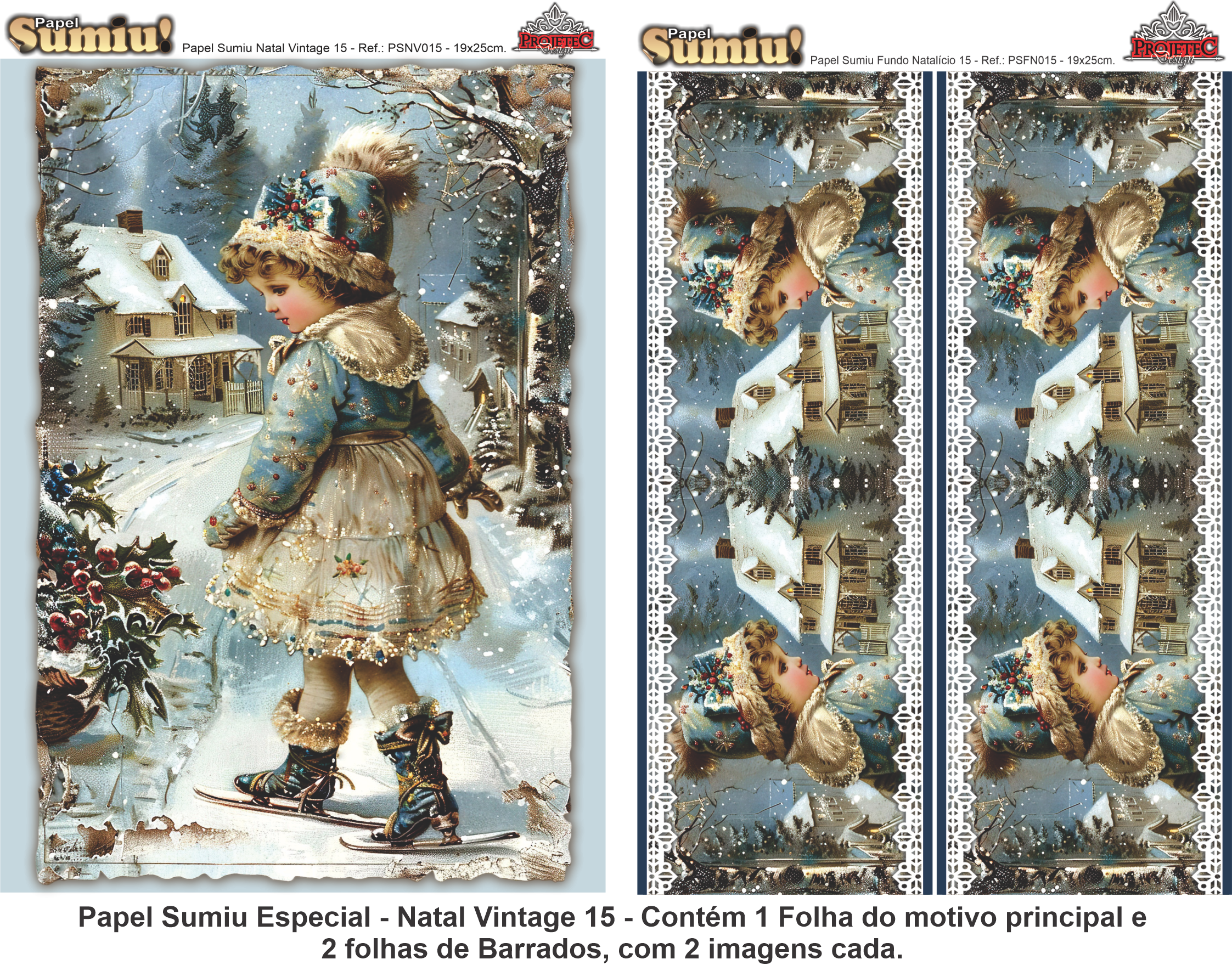 PAPEL SUMIU Especial – Natal Vintage 015 – REF.: PSNV015 – PACK C/3 Folhas 19x25cm