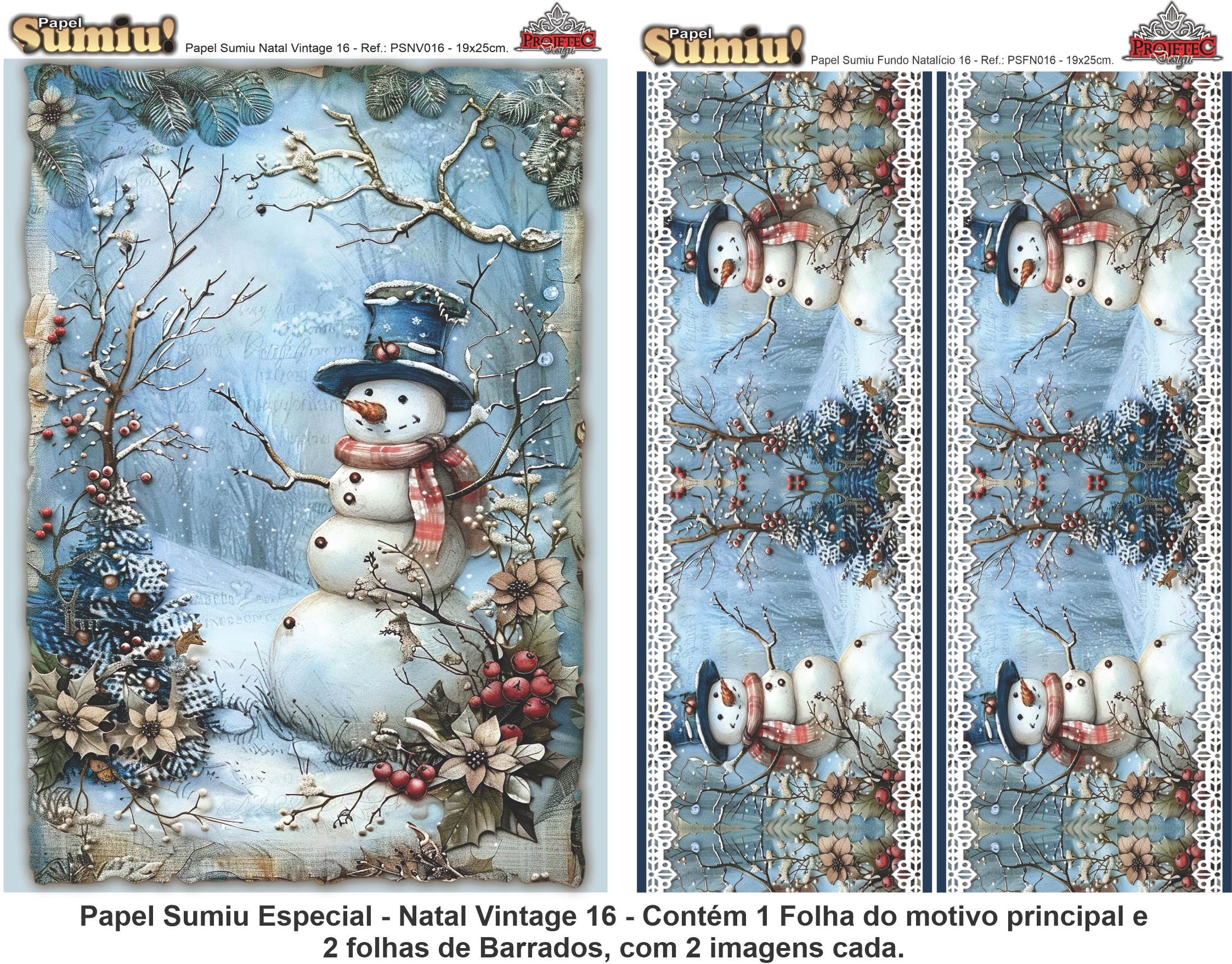 PAPEL SUMIU Especial – Natal Vintage 016 – REF.: PSNV016 – PACK C/3 Folhas 19x25cm