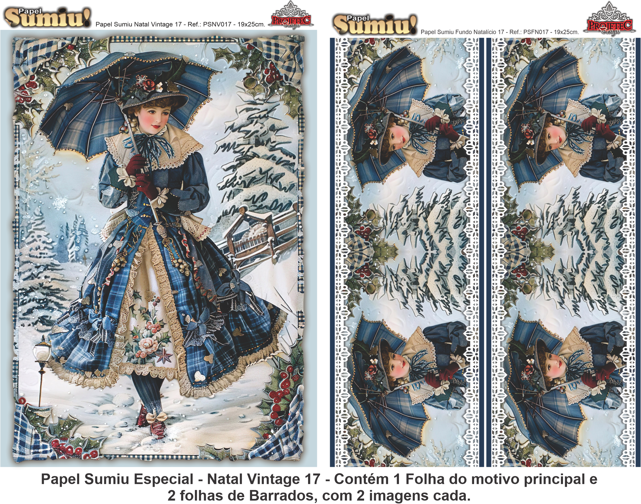 PAPEL SUMIU Especial – Natal Vintage 017 – REF.: PSNV017 – PACK C/3 Folhas 19x25cm