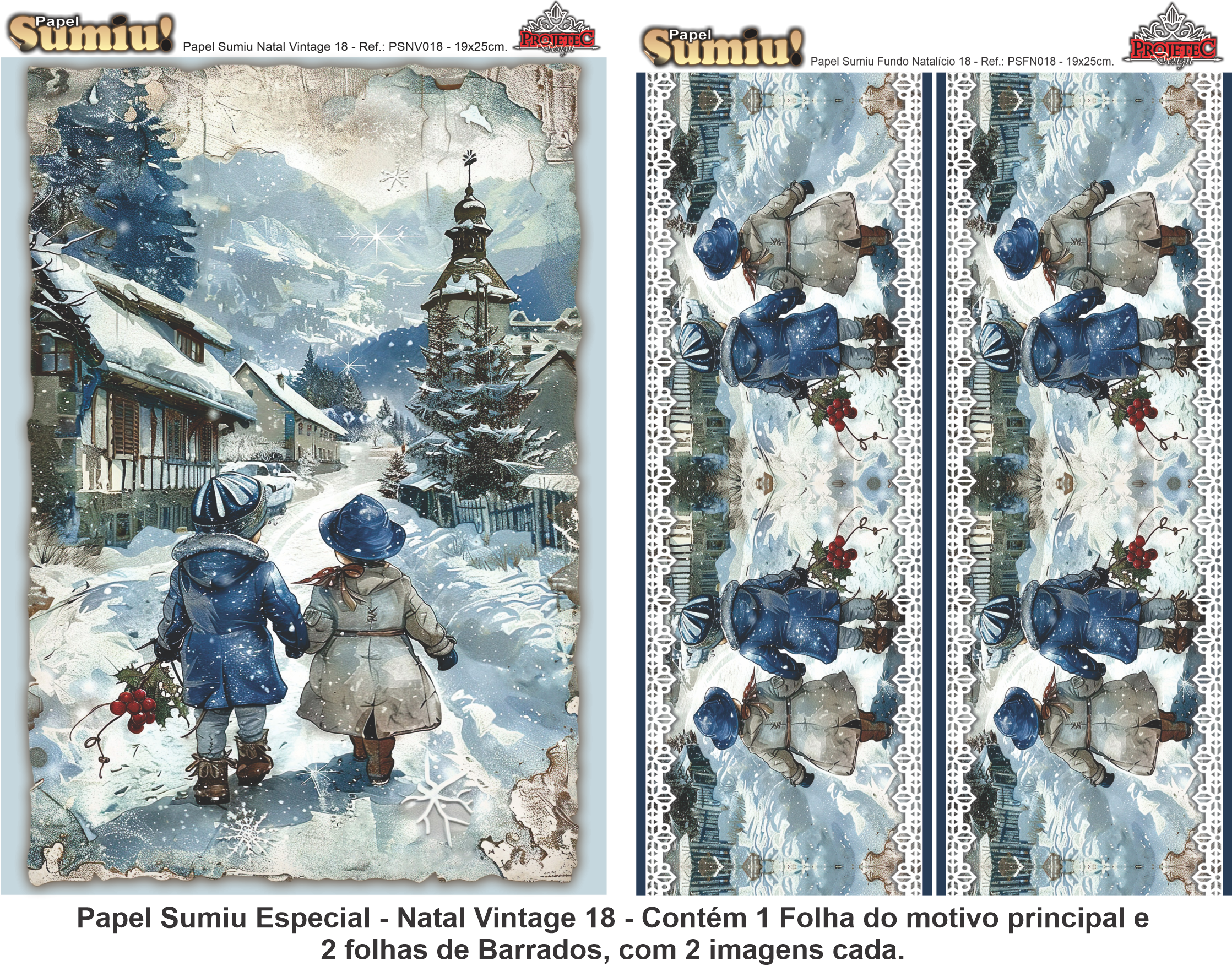 PAPEL SUMIU Especial – Natal Vintage 018 – REF.: PSNV018 – PACK C/3 Folhas 19x25cm