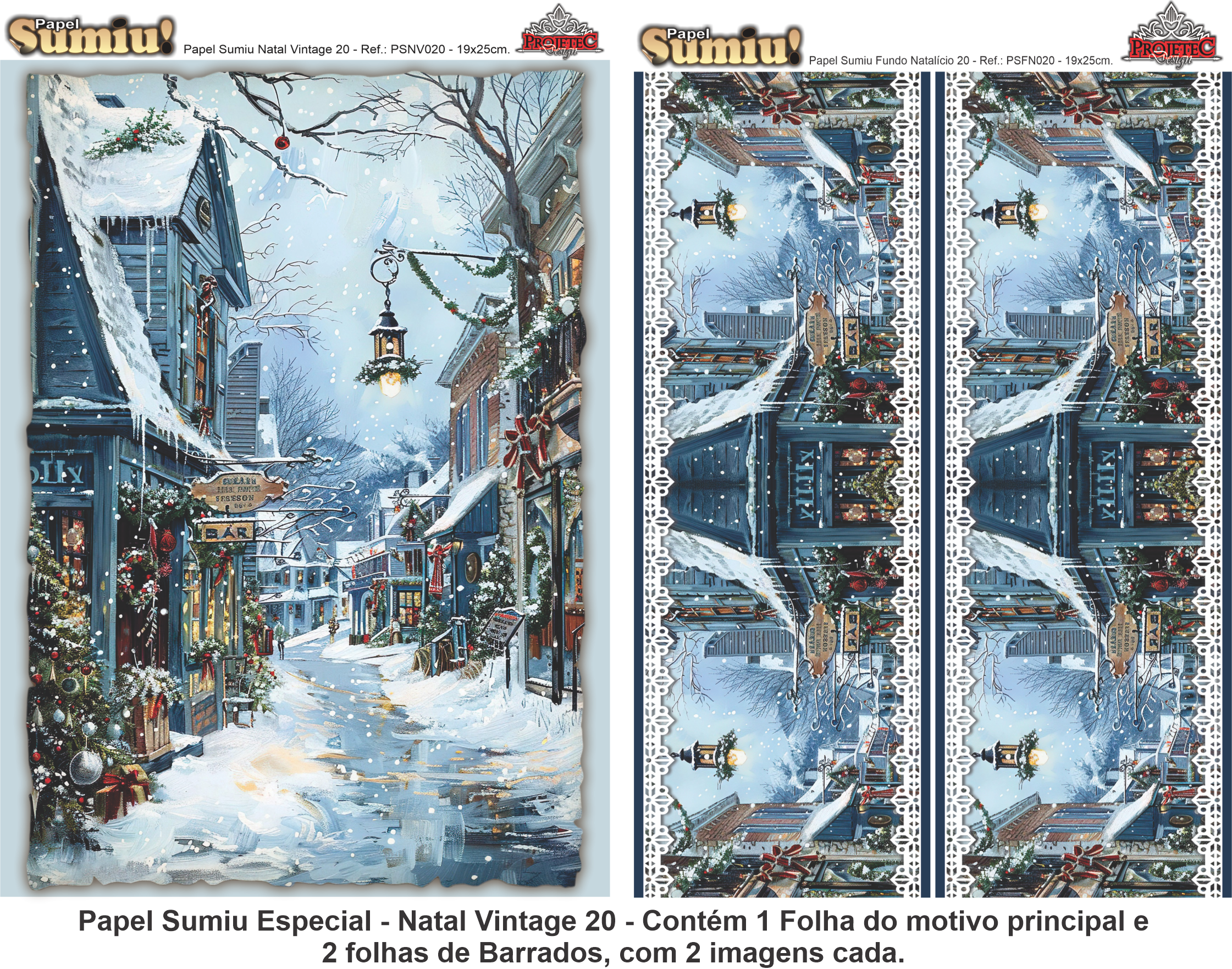 PAPEL SUMIU Especial – Natal Vintage 020 – REF.: PSNV020 – PACK C/3 Folhas 19x25cm