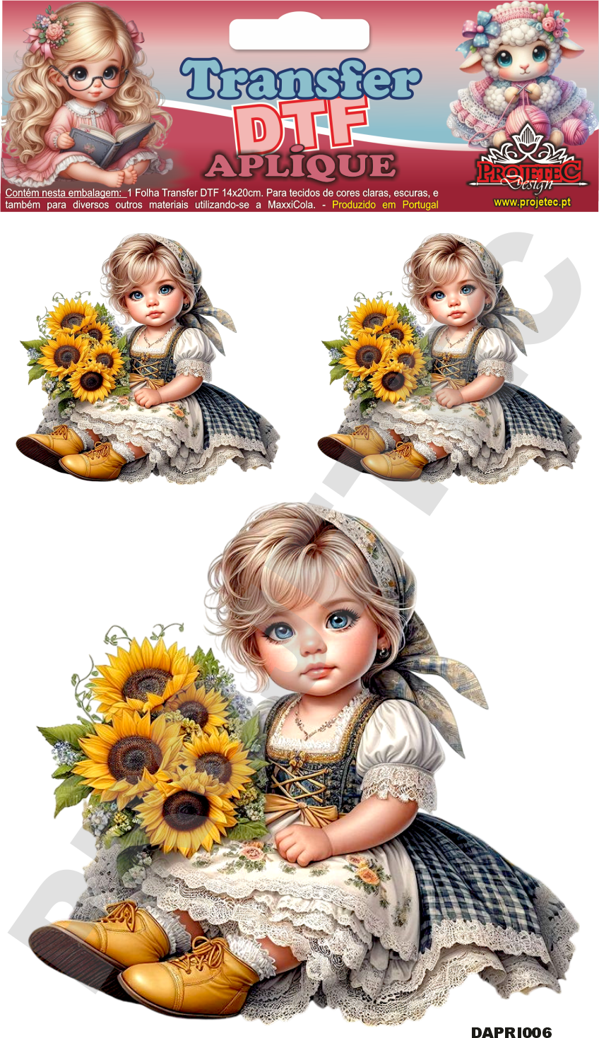 Transfer DTF, é uma nova tecnologia de transferência de imagem para tecidos de qualquer tipo e cor, e agora também pode ser utilizado e retirado à frio, com a MaxxiCola e impermeabilizado com o Verniz VitraLux, ambos da Projetec Design. Pode também ser utilizado em madeira, MDF Cru ou lacado de qualquer cor. Transferência rápida por calor, com a utilização de ferro de engomar ou prensa térmica. Rápida transferência sem a necessidade de acabamentos posteriores.
