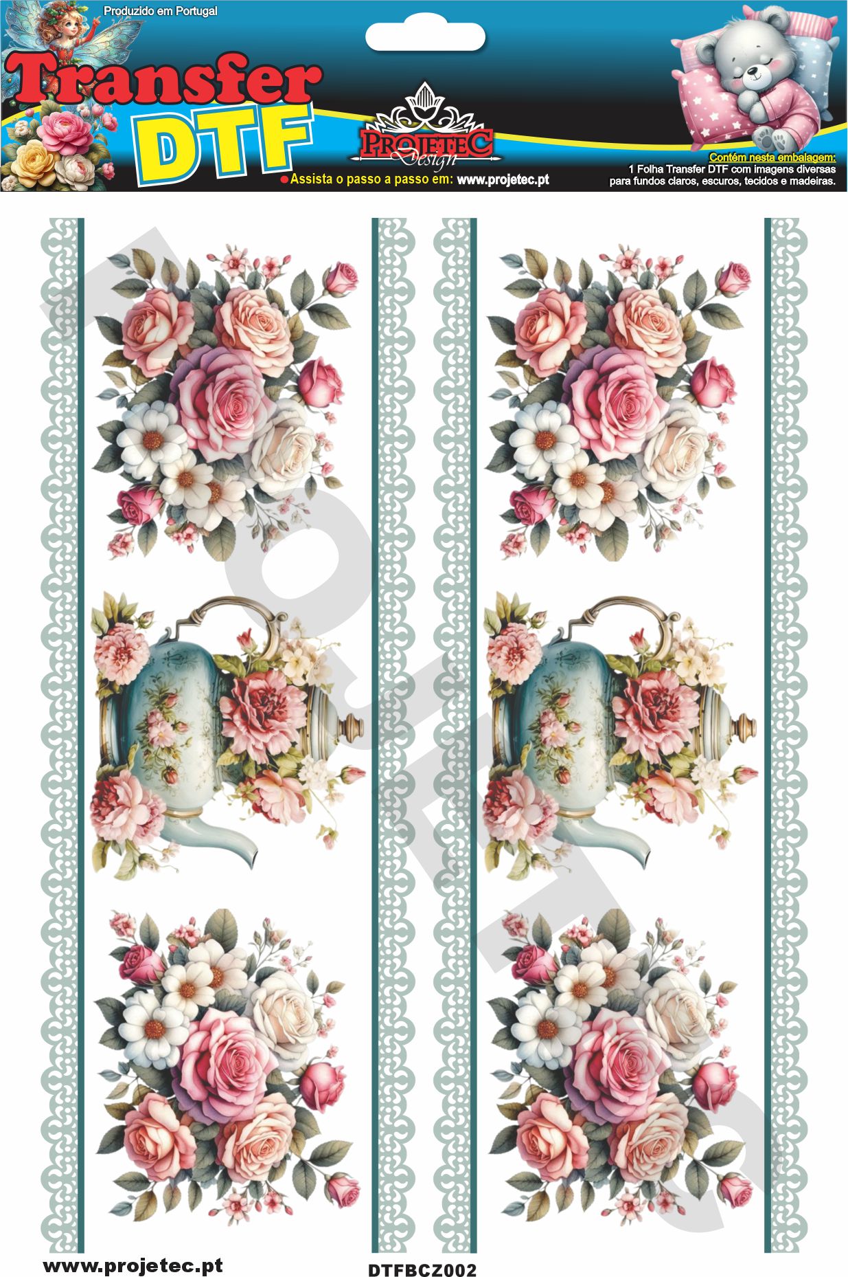 Transfer DTF, é uma nova tecnologia de transferência de imagem para tecidos de qualquer tipo e cor. Pode também ser utilizado em madeira, MDF Cru ou lacado de qualquer cor. Transferência rápida por calor, com a utilização de ferro de engomar ou prensa térmica. Rápida transferência sem a necessidade de acabamentos posteriores.