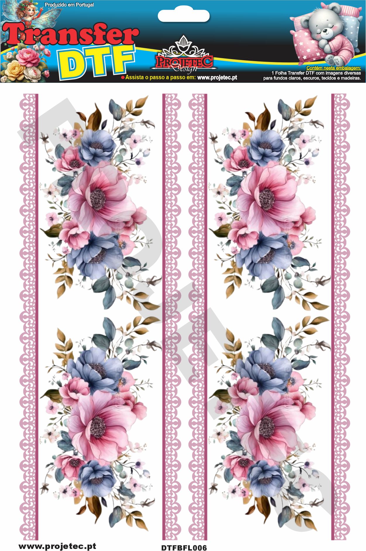 TRANSFER DTF BARRADINHOS FLORAL 06 – A4C/2 PARTES – REF: DTFBFL006
