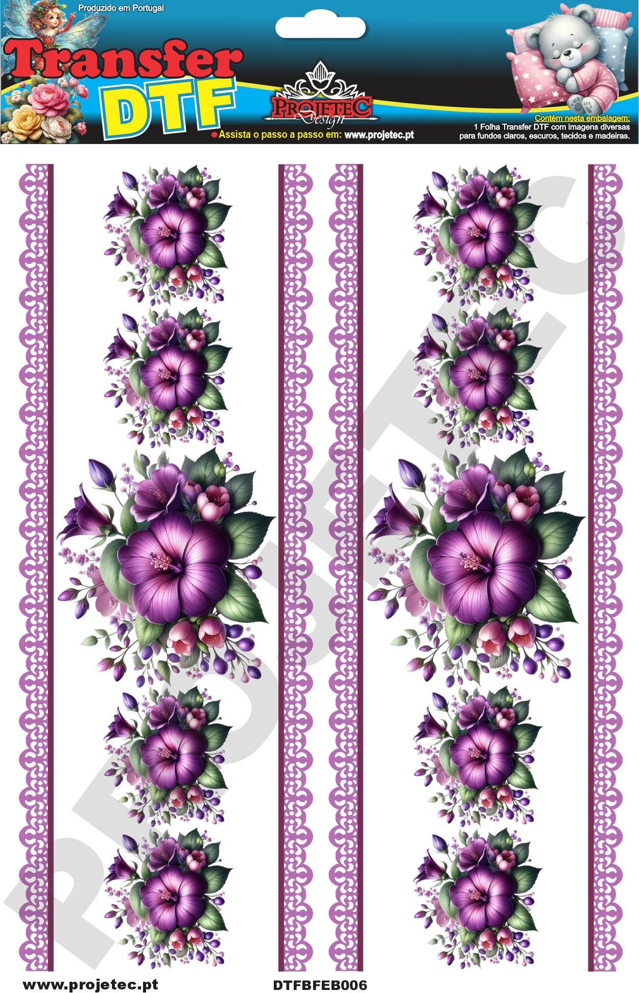 TRANSFER DTF BARRADINHOS FLORES E BORBOLETAS 06 – A4C/2 PARTES – REF: DTFBFEB006
