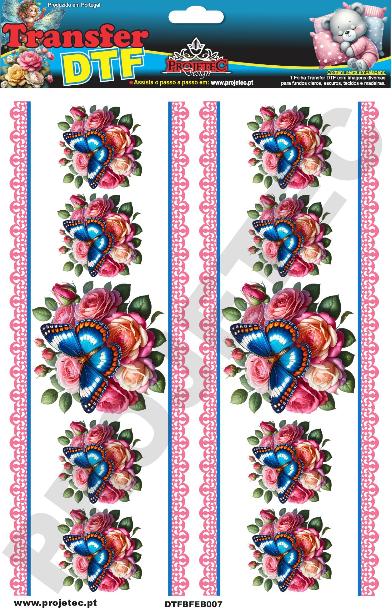 TRANSFER DTF BARRADINHOS FLORES E BORBOLETAS 07 – A4C/2 PARTES – REF: DTFBFEB007